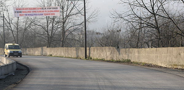 Yeni Mahalle’de oturan vatandaşlar, Sapanca Belediyesi’nin mahallelerinde yaptığı çalışmalara pankartla teşekkür etti.