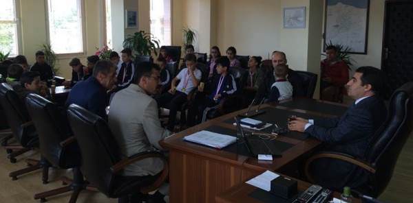 Sapanca Kaymakamı Süleyman Yıldırım Nazmiye Özer Sözer Ortaokulu öğretmenleri ve çeşitli dallarda yapılan müsabakalarda dereceye giren öğrencileri makamında kabul etti.